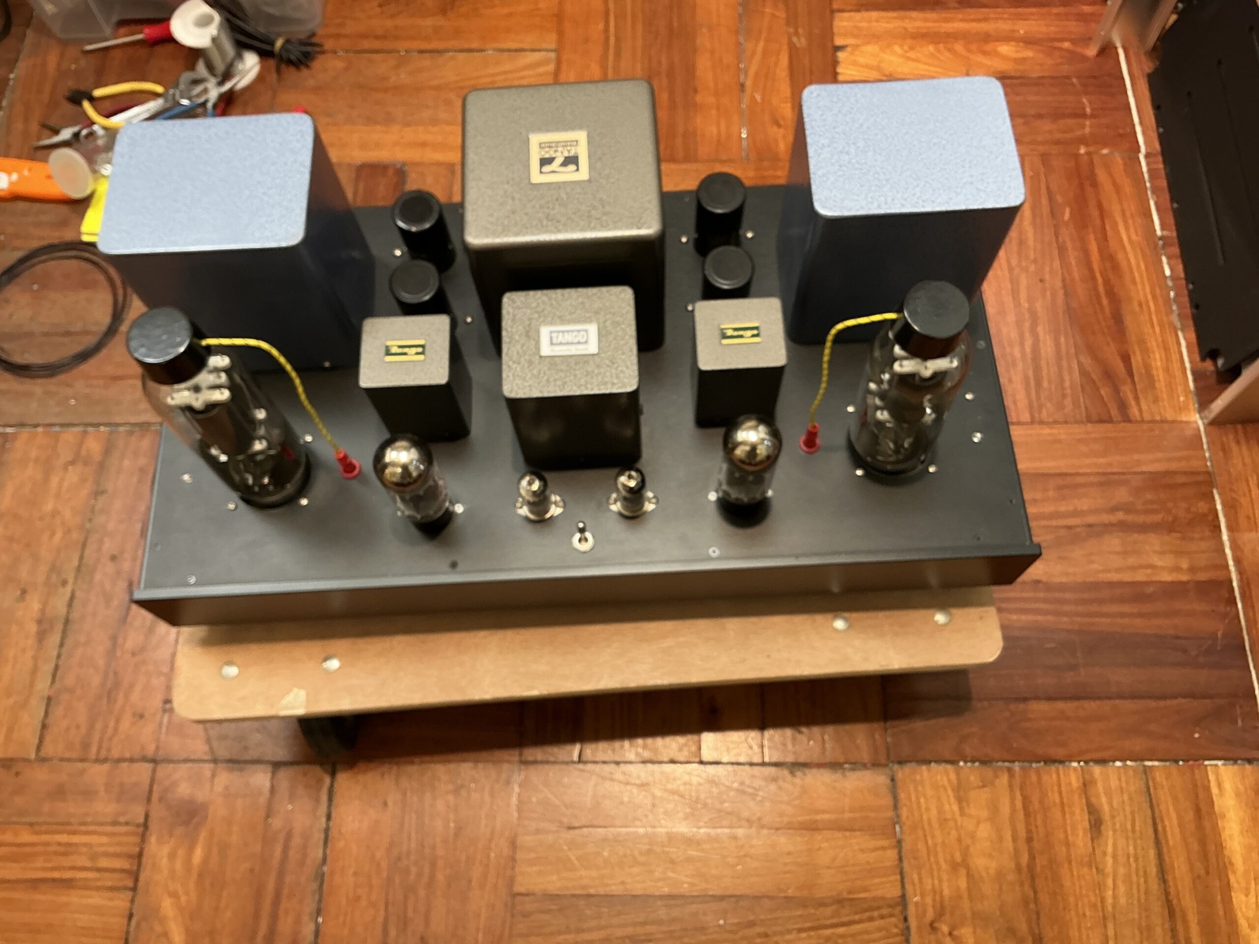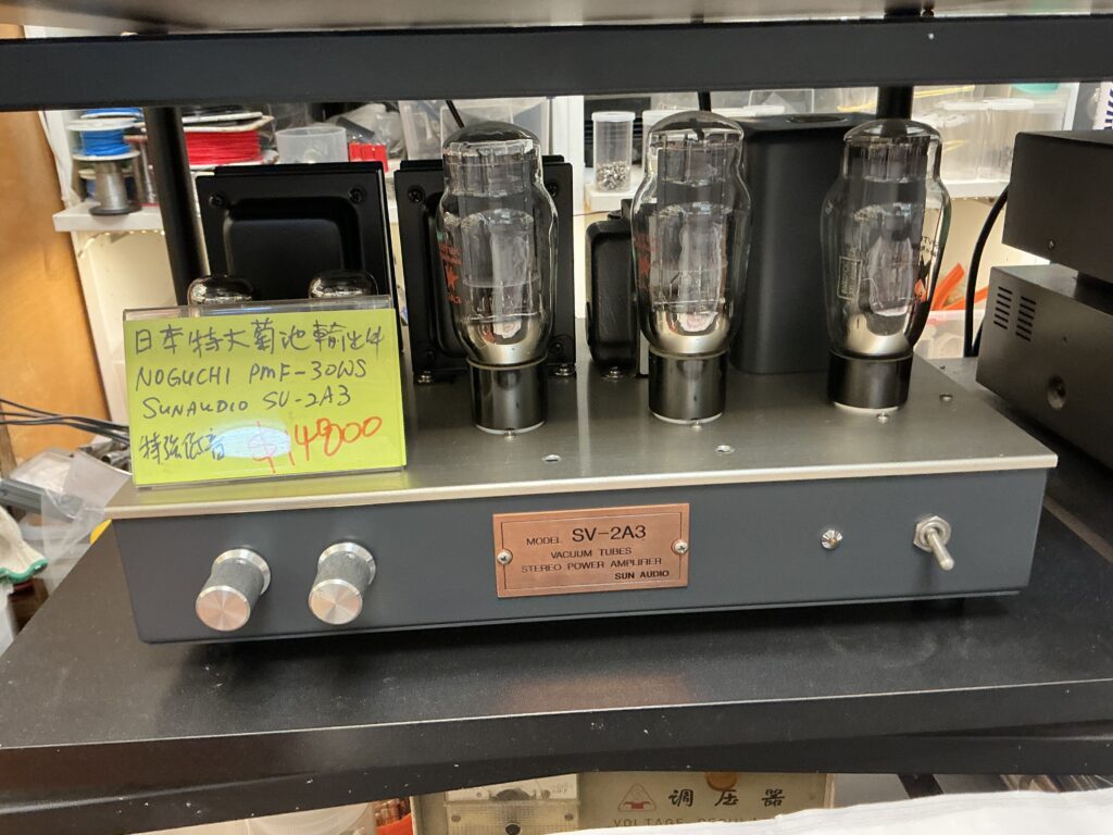 This is a SUNAUDIO SV-2A3 having a nice gold top plate. It has NOGUCHI output transformers and Hammond choke. The bigger size transformers gives better and deeper bass. Good quality parts are being used to ensure good overall performance.