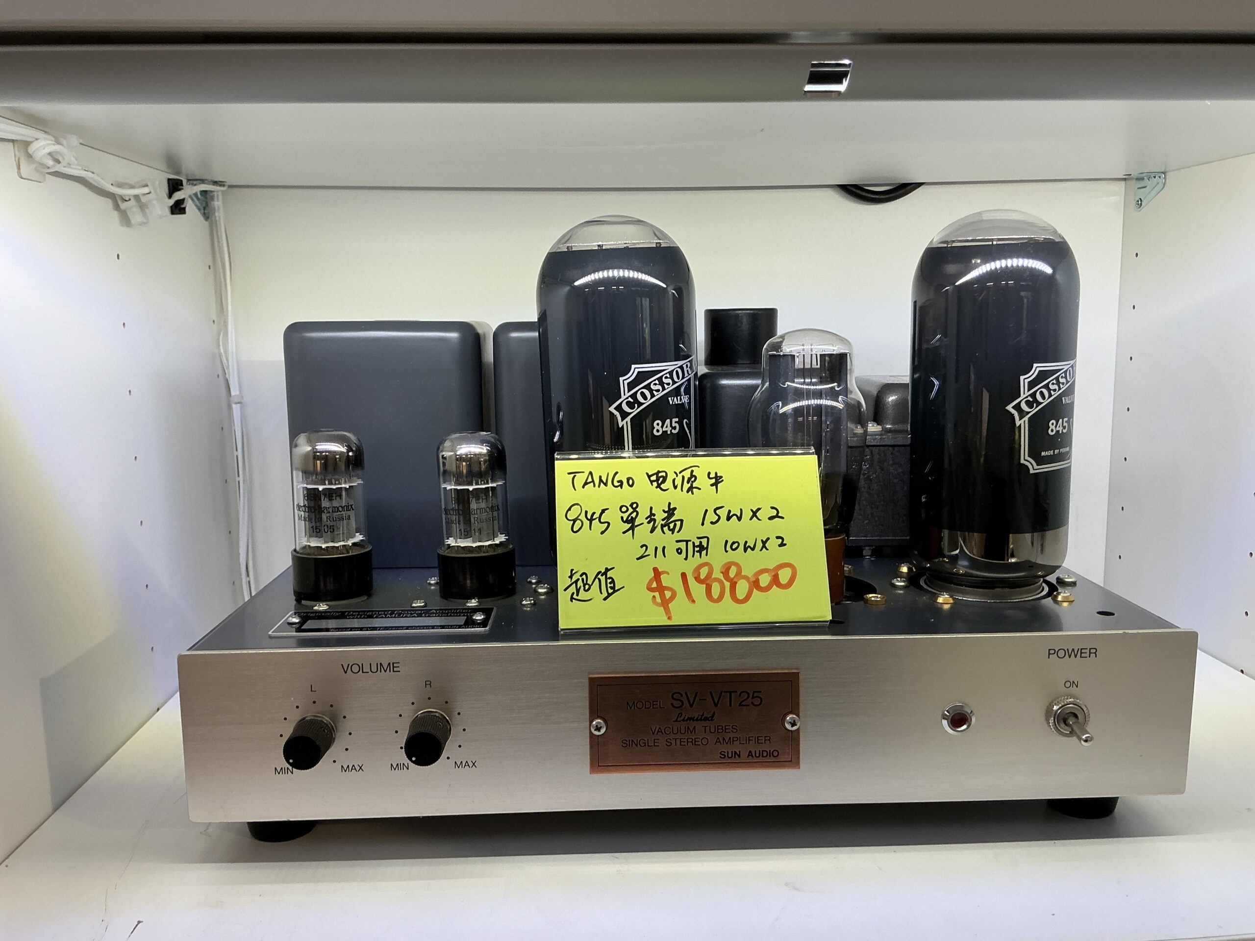 The unit was assembled in Japan by SUNAUDIO. It works on 100V but within upgrades on volume pots, capacitors and resistors. The transformers have square corners and it is the therefore the lastest version. Demo unit in excellent condition.